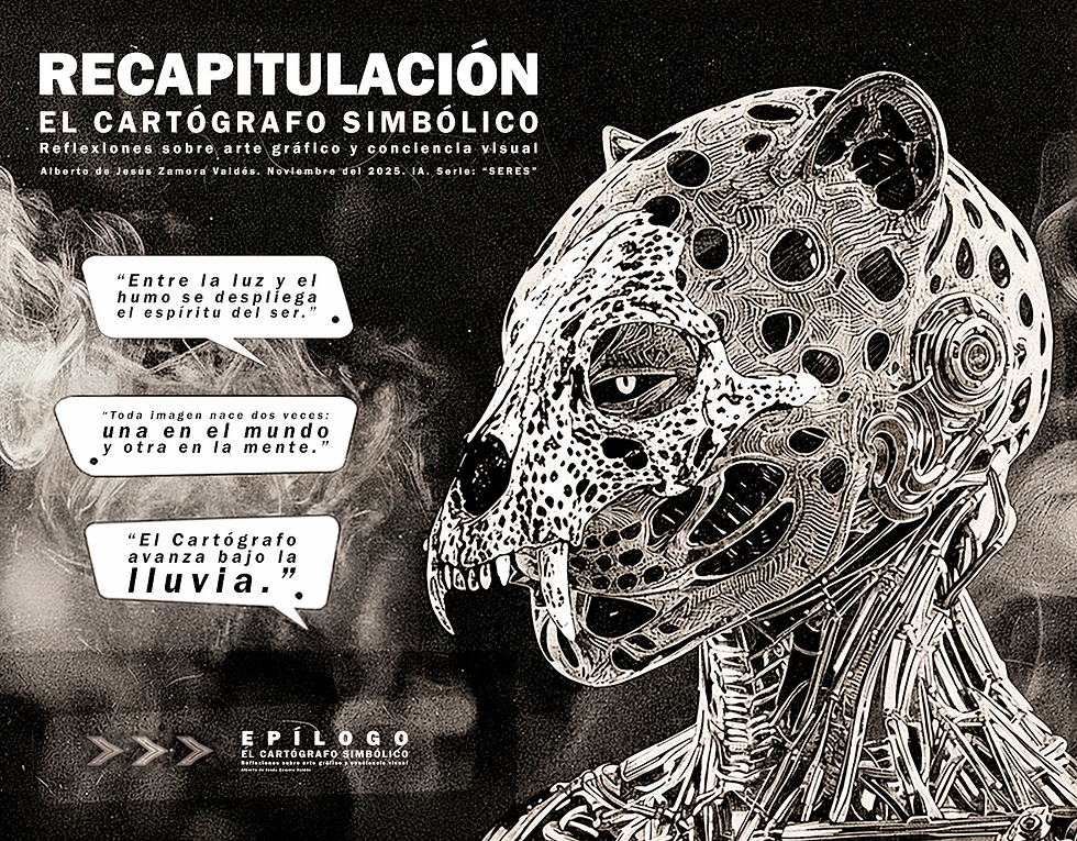 En conjunto, recapitulación y epílogo constituyen un marco de autocrítica fundamentado en la revisión contextualizada del proceso. Ambos conceptos fortalecen la capacidad del Cartógrafo Simbólico para articular una práctica situada, consciente de su propia genealogía gráfica y de la dimensión simbólica que, en el tiempo, sostiene y transforma su producción investigativa.